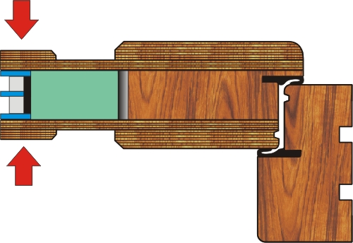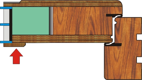 Drzwi grubości 80 mm z trzech gatunków drewna, sosny, merantii i dębu. Poniżej prezentujemy oferowane przez nasz przekroje.