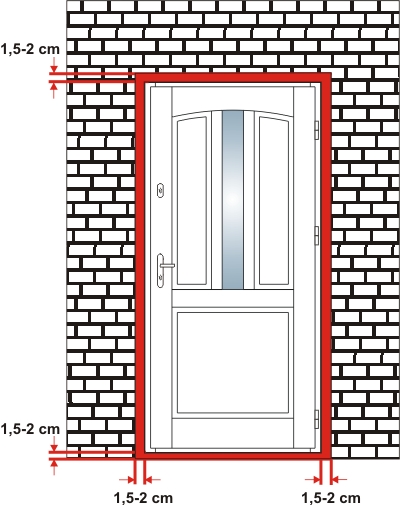 Przy pomiarze drzwi jednoskrzydłowych należy uwzględnić luz na pianę montażową jak na rysunku poniżej