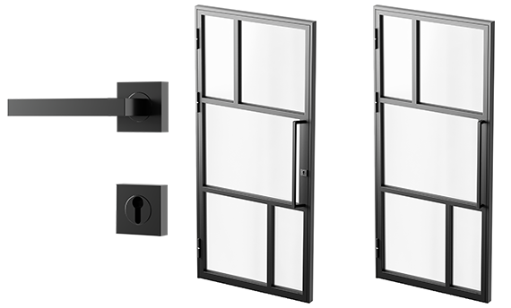 Drzwi standardowo lakierowane są metodą proszkową na kolor czarny RAL 9005 (istnieje także możliwość polakierowania na dowolny kolor z palety RAL). Wyposażone w czarną klamkę z zamkiem i wkładką lub stalową, pionową antabę